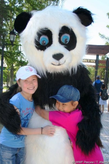 В мероприятиях, посвященных экологической тематике. Панда - исчезающий вид, а потому прекрасно проиллюстрирует тематику мероприятия.