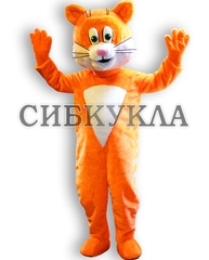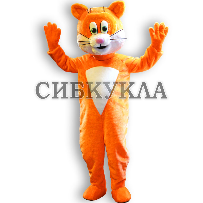 Ростовая кукла кот выпонена из оранжевого меха с белым "треугольничком" на пузике.