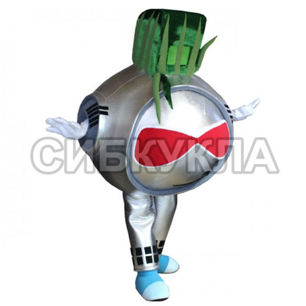 Ростовая кукла робот имеет круглое туловище в виде головы с большой прической в виде гребня.
